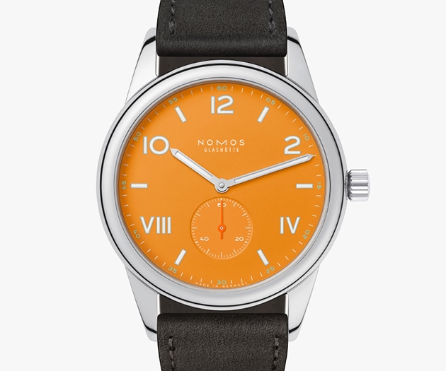 Club is one of the youngest and sportiest NOMOS models. Its case, made from stainless steel and sapphire crystal glass, easily brushes off small and large shocks. Some versions are particularly water resistant, others sport the new NOMOS bracelet.